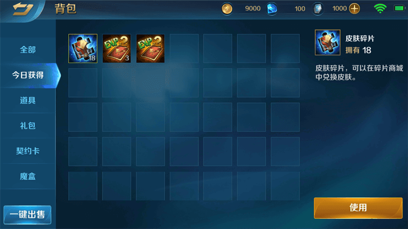 背包新增“今日获取”分页及“一键出售”按钮,更方便地查看今日新获得道具和一键出售已解锁英雄、皮肤契约卡。
