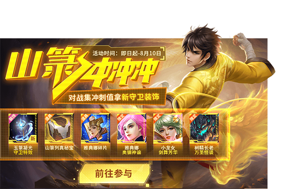 开启山箓冲冲冲活动,通过参与对战、使用指定英雄累计个人及全服冲刺值,累计到一定数量可以解锁相应奖励,最高有机会获得凌绝群峰称号、雅典娜-奥钢神谕、玉兔-捣鬼小精灵、量子博士-惊喜传送者、玉箓凝光守卫等奖励!