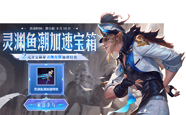 花费20点券可购买灵渊鱼潮加速宝箱(不可交易),打开必得茶杯投影1天体验卡,并有机会获得灵渊鱼潮加速特效、无尽宝典经验、积分等装饰道具。