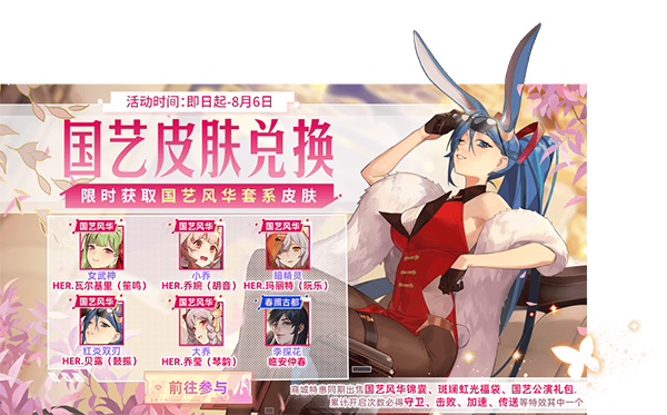 国艺皮肤兑换开启!限时获取女武神-HER.瓦尔基里(笙鸣)、红炎双刃-HER.贝露(鼓振)、暗精灵-HER.玛丽特(阮乐)、大乔-HER.乔莹(琴韵)等好礼!