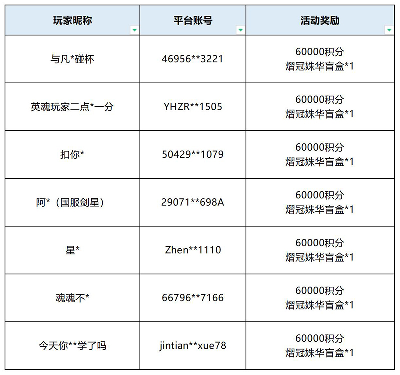 1、查阅上面公示的活动奖励名单,及时核对奖励详情。如有疑问,请于2023年8月4日23:59前联系官方客服进行处理;