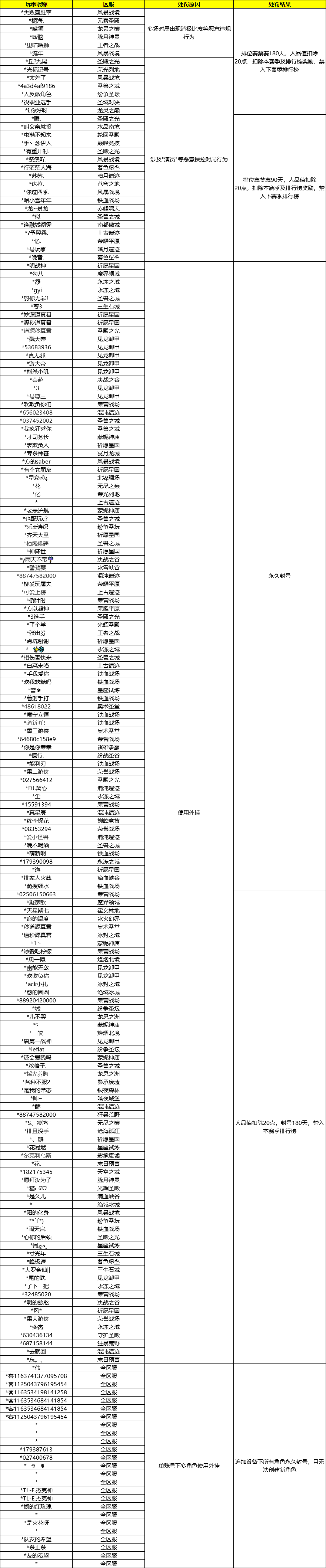 以下为本赛季部分违规玩家处罚名单
