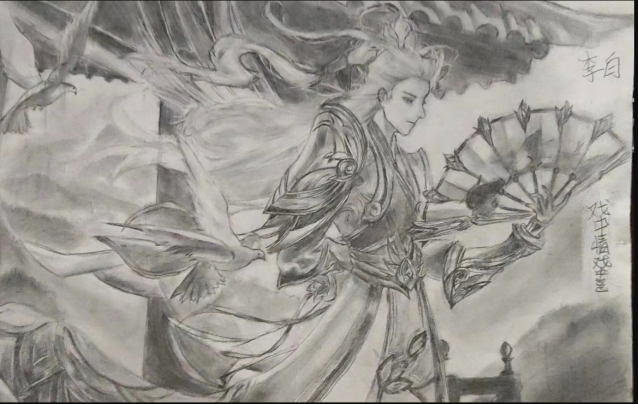 例如人物形象已具有雏形切有一定细节描绘的手绘作品: